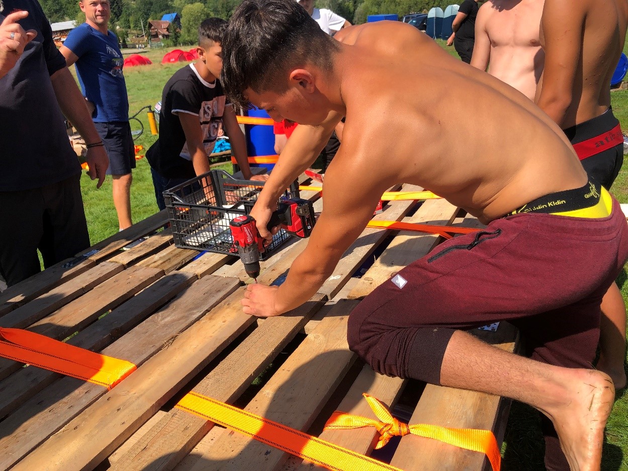Construcția unei plute este o formă de pedagogie experientiala – învățarea experiențială in orice conditii meteorologice. Aceasta activitate de construire a unei plute și pregătirea detaliată a traseului pe un lac, are loc în timpul unui antrenament de mai multe zile cu cate 10 participanti si cate un profesor din grupul tinta secundar pentru invatare experientiala. Pe lângă principiile metodologice de constructie a plutei este implementat și conceptul de siguranță, obiectivele pedagogice fiind definite detaliat pentru atingerea telului. Conținutul acestei formări creeaza o perspectivă integratoare, holistică asupra învăţării care combină experienţa, percepţia, cogniţia şi comportamentul si se realizeaza prin practica educației experiențiale, despre opțiuni inovatoare în zone în aer liber, noi metode intensive, distractive, care sunt special concepute pentru dezvoltare personala, incredere de sine in vederea diminuarii abandonului scolar si a frecventei reduse la scoala.